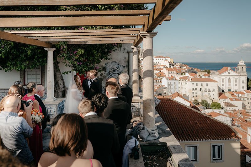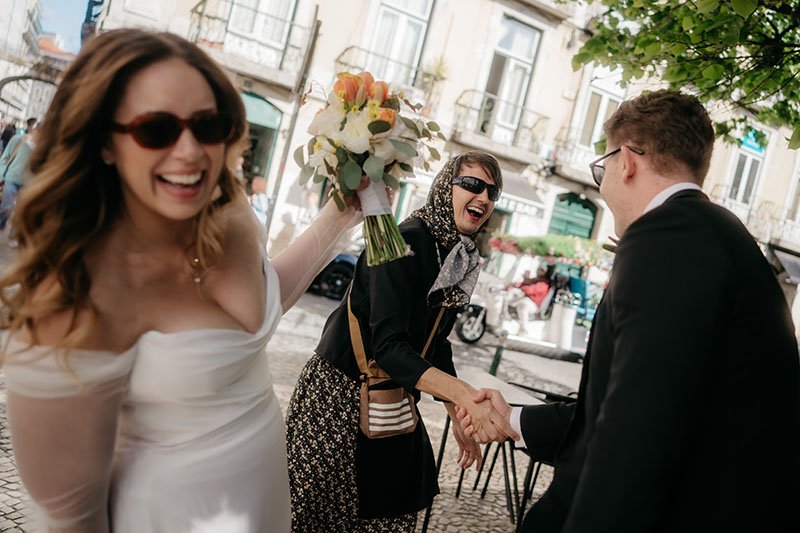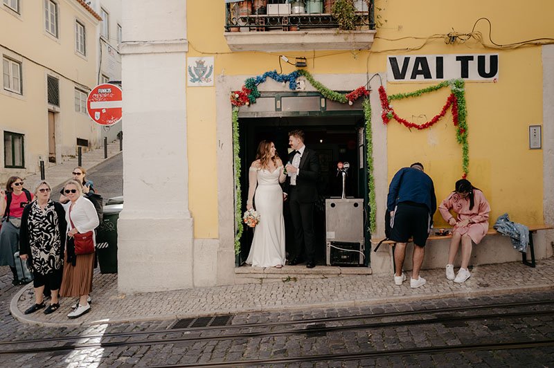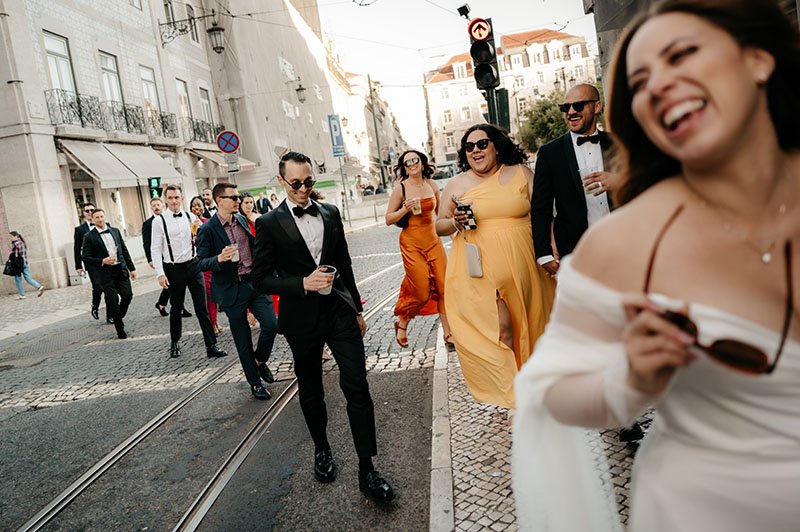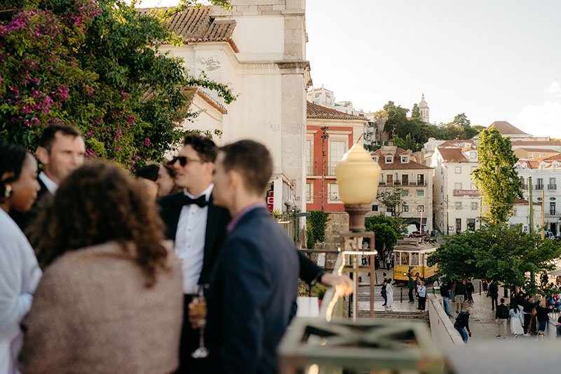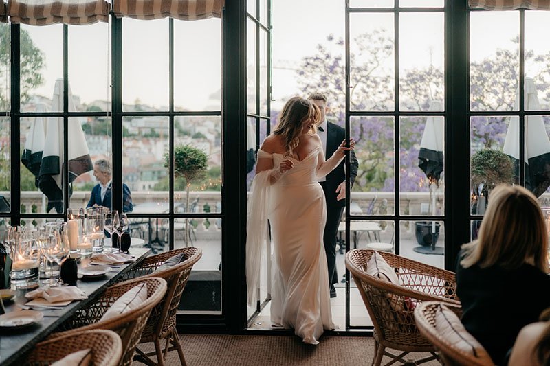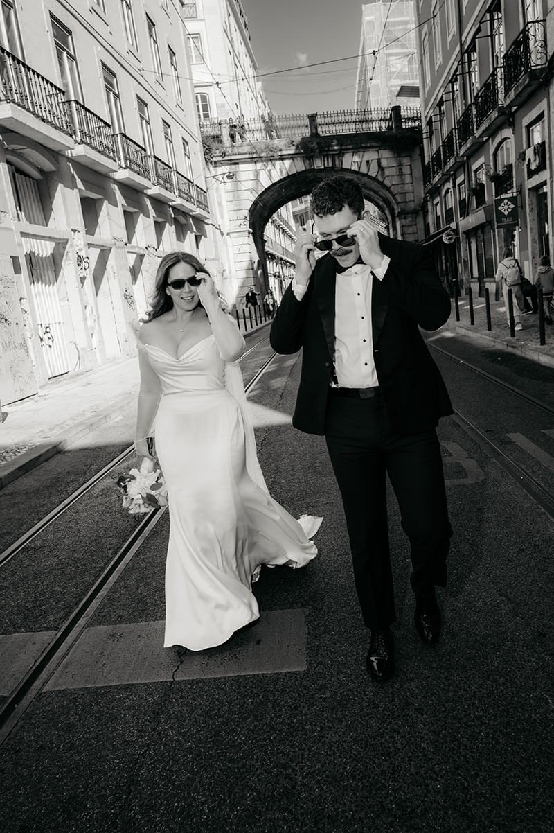 Ana & Nic didn’t want a staged wedding day. They wanted Lisbon: sun on tiled walls, narrow streets, that endofday golden light. So we kept it simple. A short ceremony at a viewpoint, cocktails just next door and then everyone walking back through the city with a speaker playing and cold beers in hand. Guests mixed with tourists, stopping at cafés, laughing their way uphill. Dinner brought everyone back together before the night slipped naturally into Lisbon’s buzz. The next morning? Brunch and pool time. Easy. Joyful. Very them.
