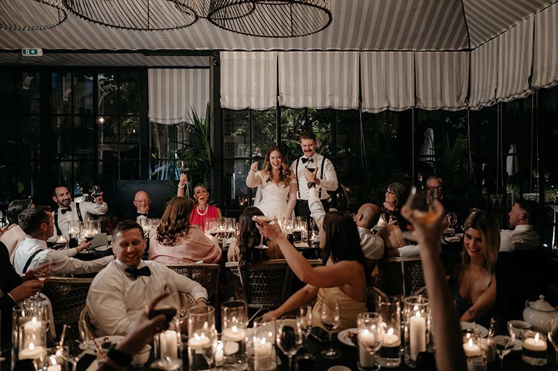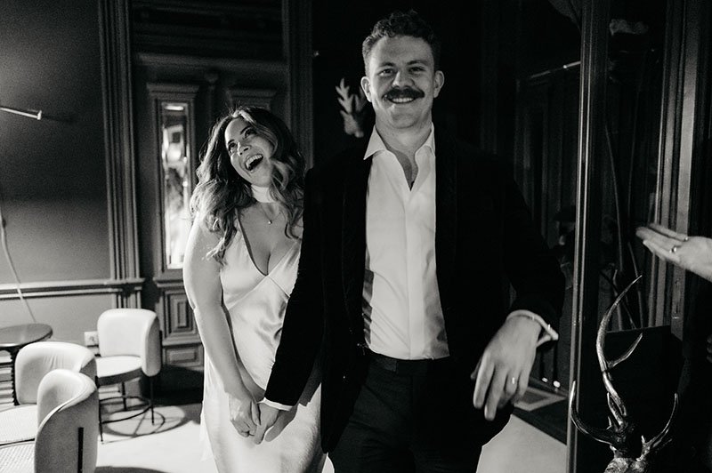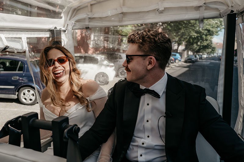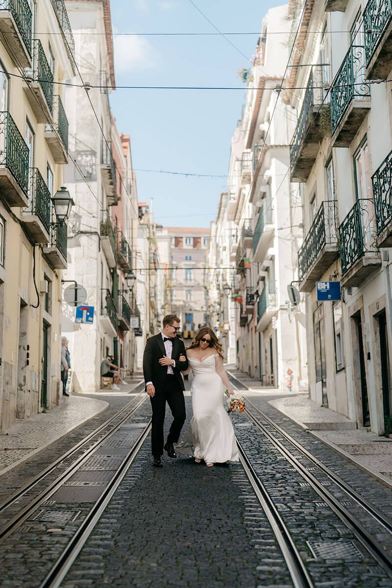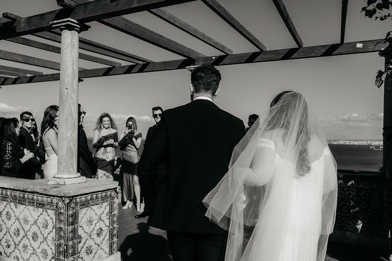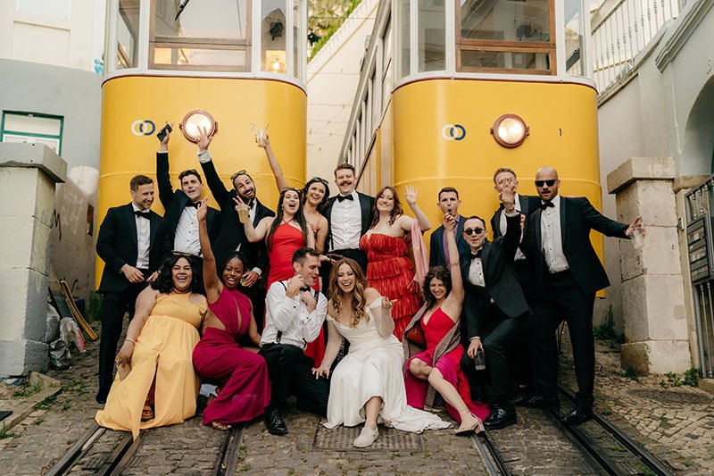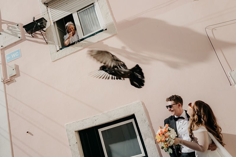 Ana & Nic didn’t want a staged wedding day. They wanted Lisbon: sun on tiled walls, narrow streets, that endofday golden light. So we kept it simple. A short ceremony at a viewpoint, cocktails just next door and then everyone walking back through the city with a speaker playing and cold beers in hand. Guests mixed with tourists, stopping at cafés, laughing their way uphill. Dinner brought everyone back together before the night slipped naturally into Lisbon’s buzz. The next morning? Brunch and pool time. Easy. Joyful. Very them.