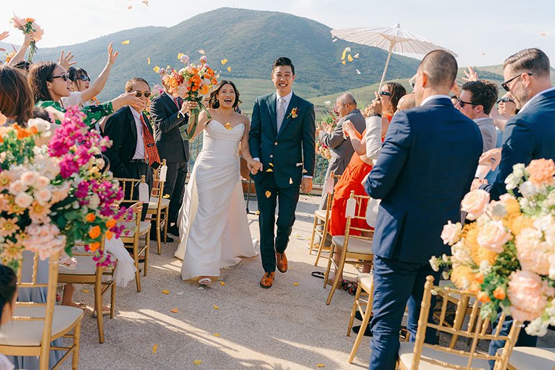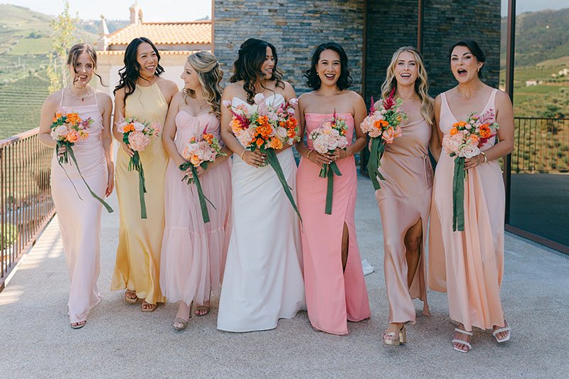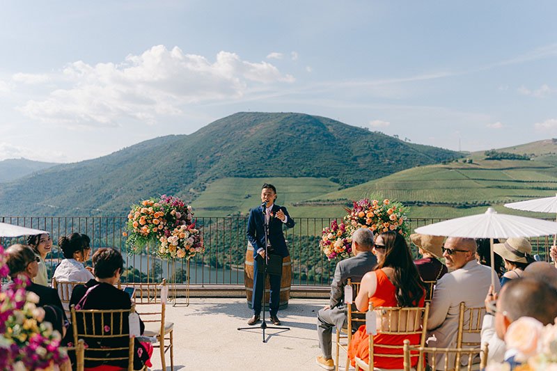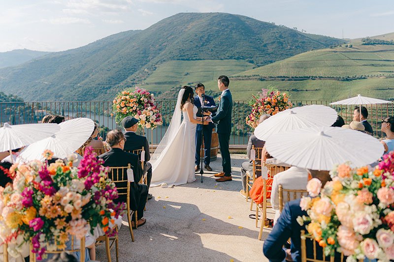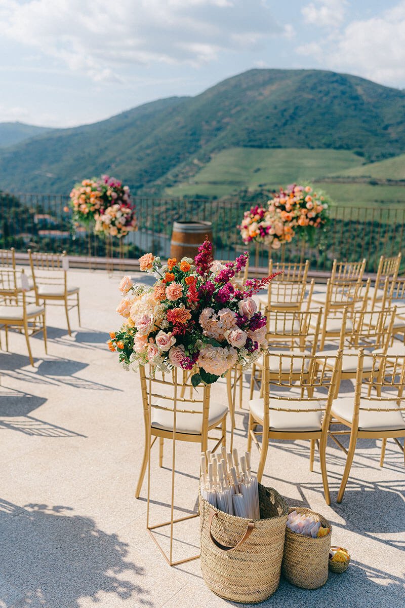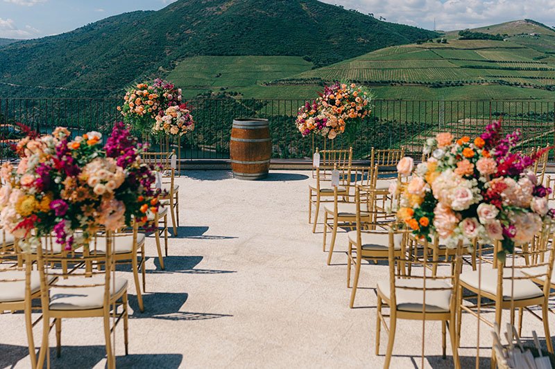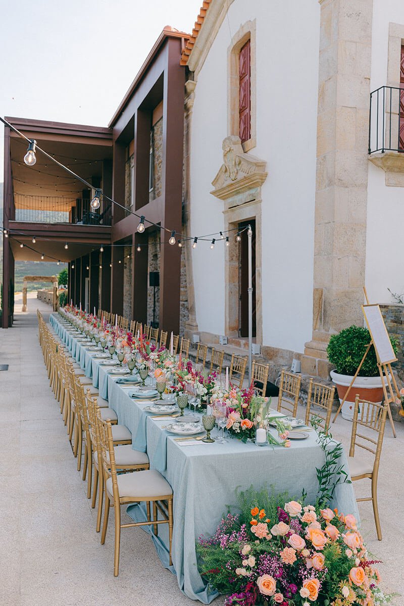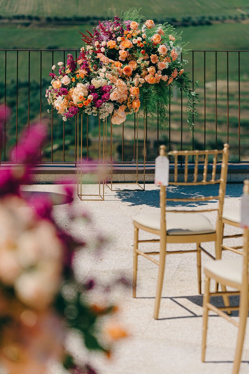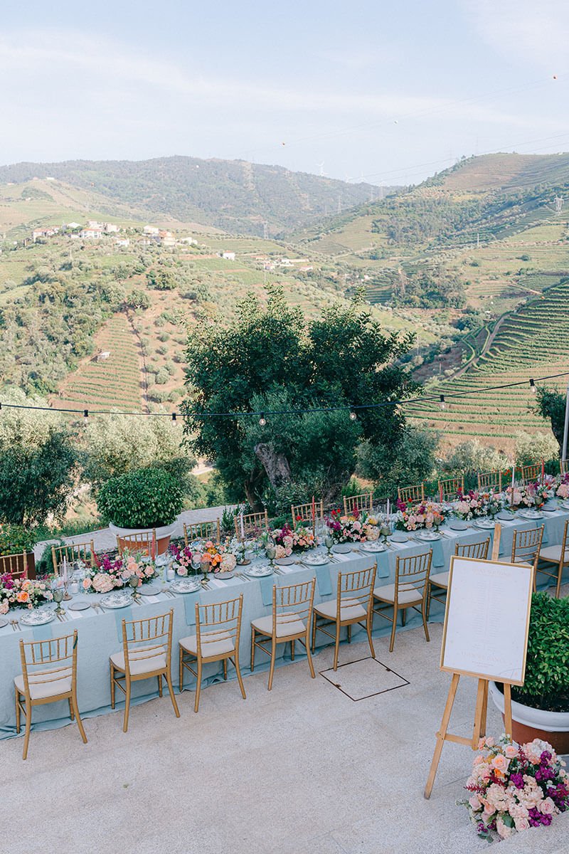 Portugal won this couple over with its culture and food. The Douro added drama, in the best way. Guests met in Porto, travelled by train along the river and arrived ready for a proper few days together. We kept decoration light and let the landscape speak, except for bold, colourful flowers that honoured the couple’s heritage and brought personality. The real focus? Wine poured generously, food that did the region justice and a dance floor that simply wouldn’t empty. The boat ride the next day, drifting along the river, was the perfect soft landing.